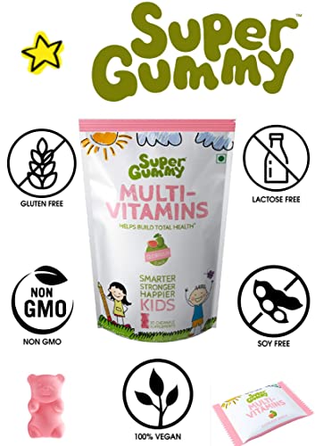 Super Gummy Kids Multivitamin Vegetarian Gummies 16 Essential Nutrients for Childrens Overall Growth (60 Chewable Gummy Bears) - Pack of 2