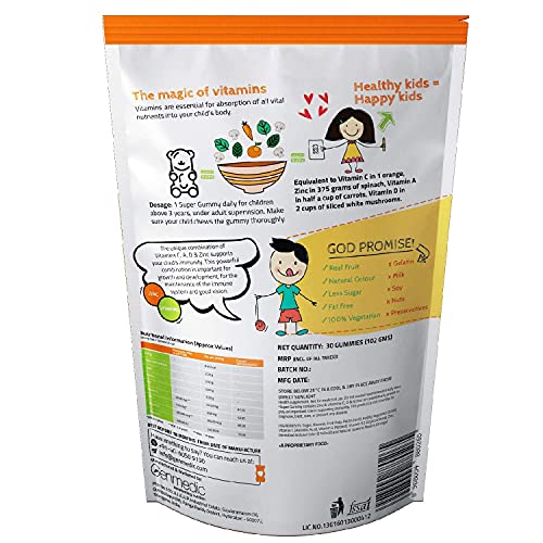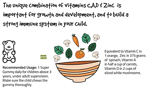 Super Gummy Zinc & Vitamin C Immunity Booster Gummies for Kids (30 Chewable Gummy Bears) - Pack of 3
