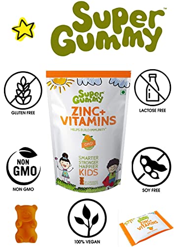 Super Gummy Zinc & Vitamin C Immunity Booster Gummies for Kids (30 Chewable Gummy Bears) - Pack of 2