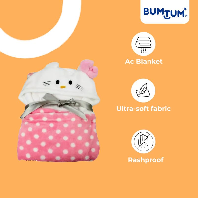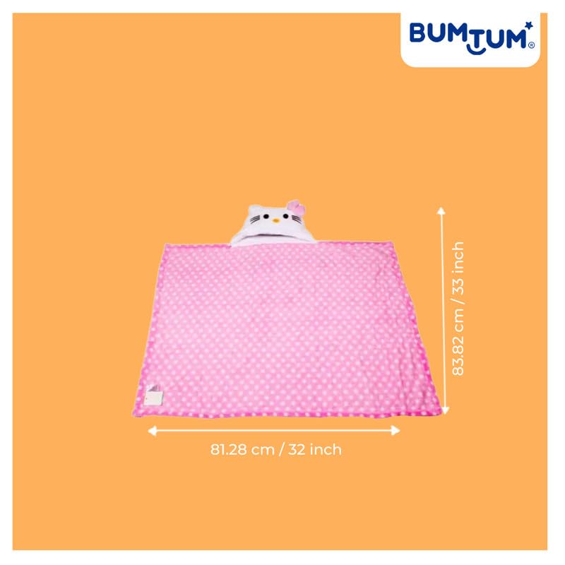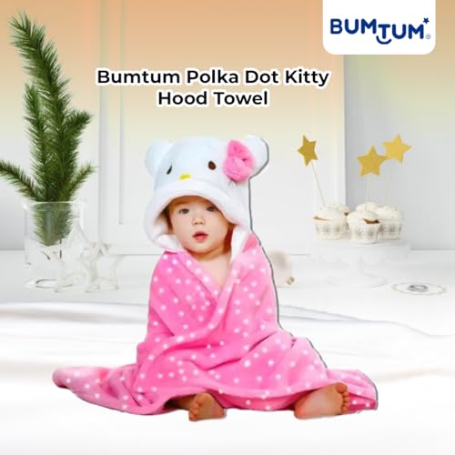 Bumtum Baby Soft Cotton Hooded Bath Towel | Ultra Absorbent | for Newborn, Infant Boys and Girls (Pink Polka Kitty)