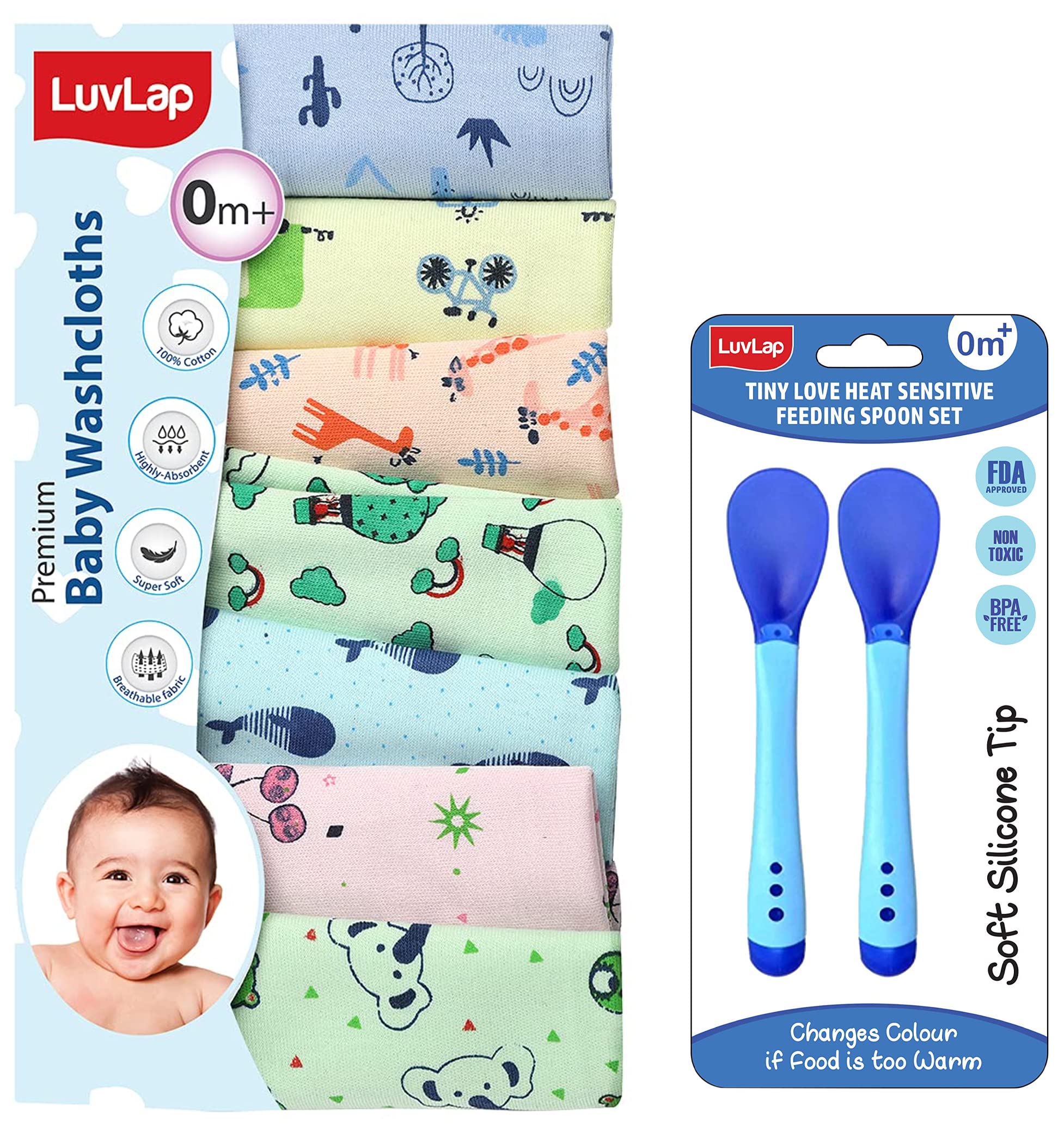 LuvLap Hosiery Cotton Cloth Premium Baby Washcloth for New Born Washable Reusable Absorbent Extra Soft Face Towels/Washcloth for Babies Giraffe Print Pack of 7 Pcs MulticolourLuvLap Premium Baby Washcloths are made of stackable knit fabric to ensure maximum comfort for the baby while cleaning him with thisLuvLap Tiny Love Heat Sensitive Baby Feeding Spoons Set Food Grade PP Kids & Baby Spoon with Soft Silicone Tip Color changing BPA Free FDA Apporved 2 pcs BlueLifeÂs little stories bloom with coming of the little one in your life. It completes your life with many joys of parenthood. For baby itÂs the next best thing to being in your arms. Entertain your little one and give him or her a personal resting place. LuvlapÂs high chairs cots walkers and other indoor products will have the whole household floored by babyÂs happy smiles and chuckles. At Luvlap we endeavour to weave the little stories into our products with an emphasis on child safety and enrichment of features. So that your little one gets the comfort thatÂs next only to the warmth of your lap. Conceived with care and made using the latest marvels of science all Luvlap products undergo multiple quality checks before they are dispatched to the stores. The products are available at all leading baby gear and online stores and conform to the european standards.
