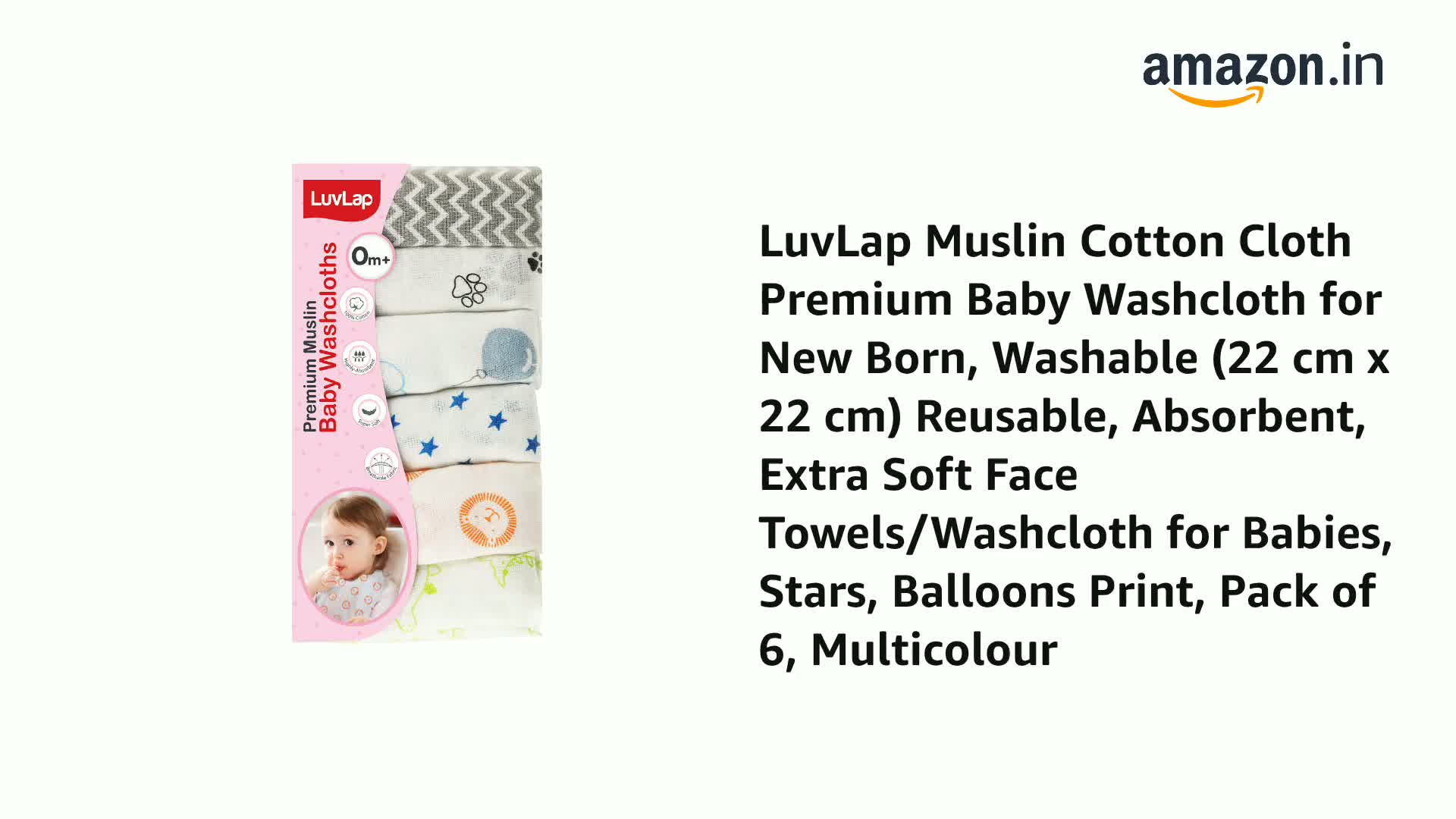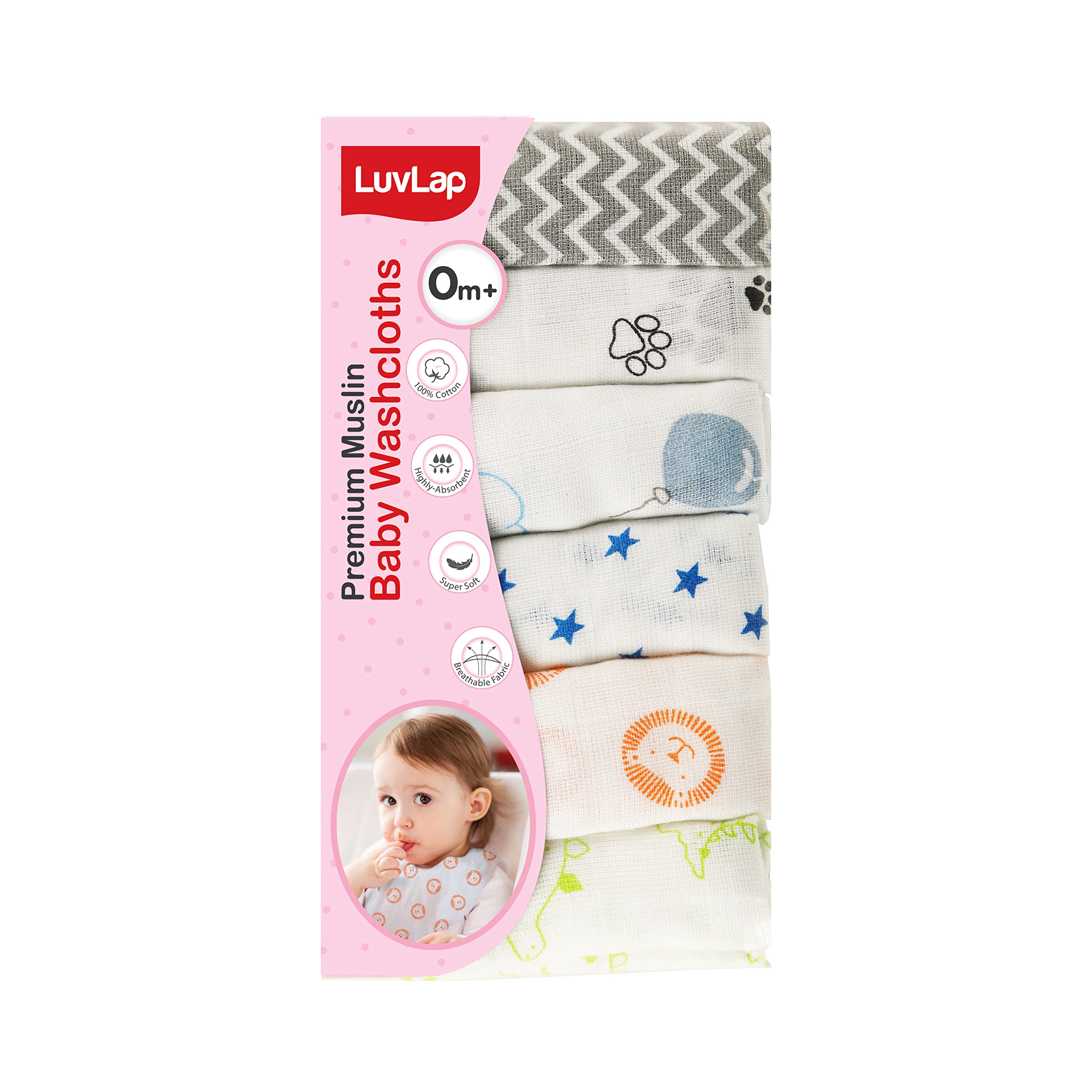LuvLap Premium Baby Washcloths are made of stackable knit fabric to ensure maximum comfort for the baby while cleaning him with this