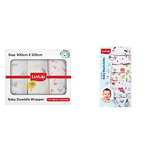 LuvLap Muslin Swaddle Birds WhiteLuvLap is committed to your babys comfort and joy. LuvLaps range of Baby Swaddles gives your newborn a snug cozy womb-like feeling! Made of premium cotton muslin the swaddles are breathable prewashed ultra-soft and softer with every wash. Free from harmful chemicals safe and irritant-free for your baby's most sensitive and tender skin. This is lightweight perfectly sized for swaddling and can serve multiple uses - burp cloth towel stroller cover play mat nursing cover etc.LuvLap Hosiery Cotton Cloth Premium Baby Washcloth for New Born Washable Reusable Absorbent Extra Soft Face Towels/Washcloth for Babies Cherry Print Pack of 7 Pcs MulticolourLuvLap Premium Baby Washcloths are made of stackable knit fabric to ensure maximum comfort for the baby while cleaning him with this