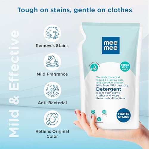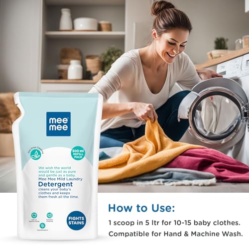 Safe and Effective Baby Detergent Liquid: Mee Mee's baby laundry detergent liquid is dermatologically tested hypoallergenic and free from harsh chemicals making it ideal for delicate fabrics and baby's skin.