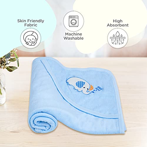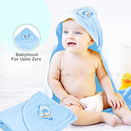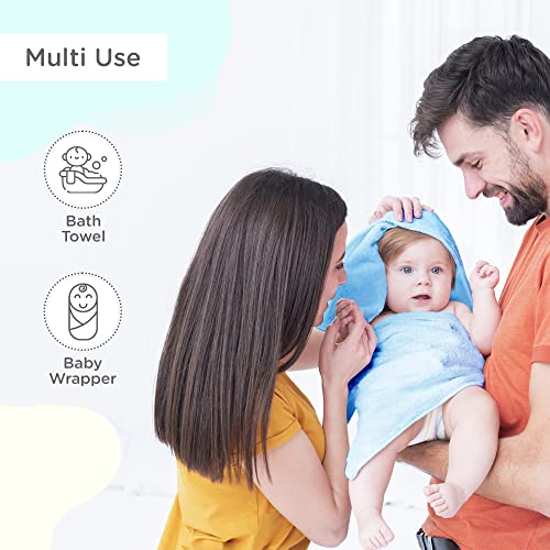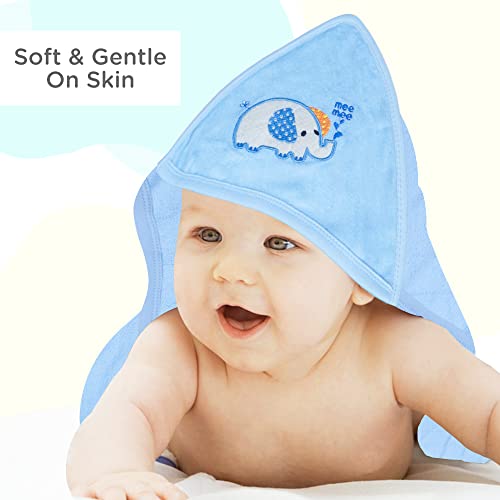 Mee Mee Bamboo Cotton Premium Baby Washcloth, Newborn Essentials, Reusable, Quick Absorbent, Extra Soft Face Towels, Kids/Toddlers/Infants, Hooded, 1-Pack, Light Blue 80X80 CM
