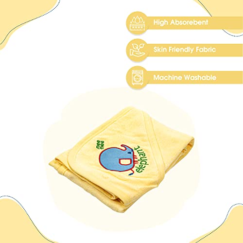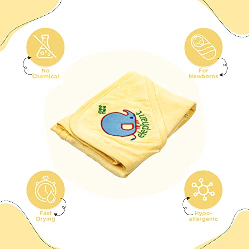 Mee Mee Bamboo Cotton Premium Baby Washcloth | Soft, Absorbent, Reusable Towels for Newborns, Kids, and Infants - Hooded, Washable - Pack of 1, Yellow 80X80 CM