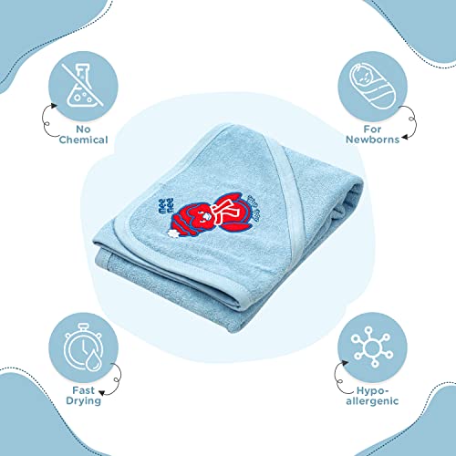 Mee Mee Bamboo Cotton Premium Baby Washcloth - Washable, Reusable, Quick Absorbent, Extra Soft Face Towels for Kids & Newborns, with Hood - Pack of 1, Blue 80X80 CM