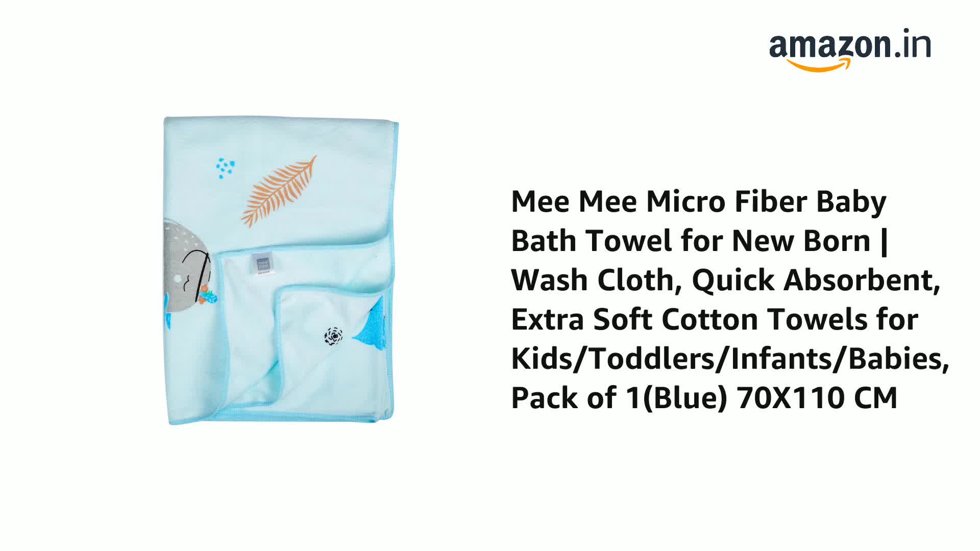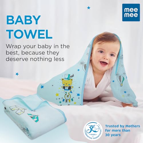 Mee Mee Micro Fiber Baby Bath Towel for New Born | Wash Cloth, Quick Absorbent, Extra Soft Cotton Towels for Kids/Toddlers/Infants/Babies, Pack of 1(Blue) 70X110 CM