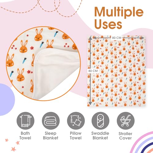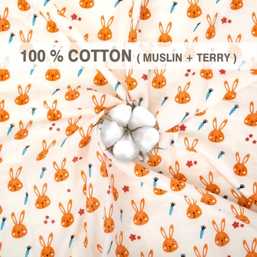Mee Mee Supremely Absorbent 100% Cotton 2 Layer Premium Soft Baby Towel for New Born | 2 Layers of Muslin & Terry | Washcloth for Kids/Toddlers/Infants/Babies | Pack of 1- Bunny Rabbit Print 75X100 CM
