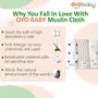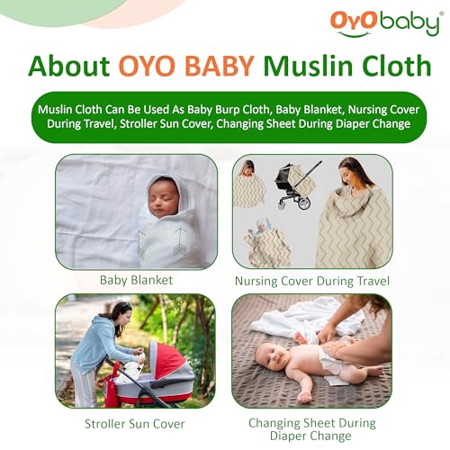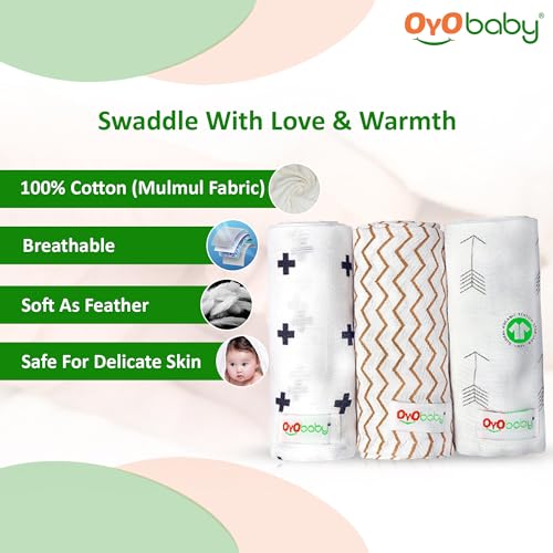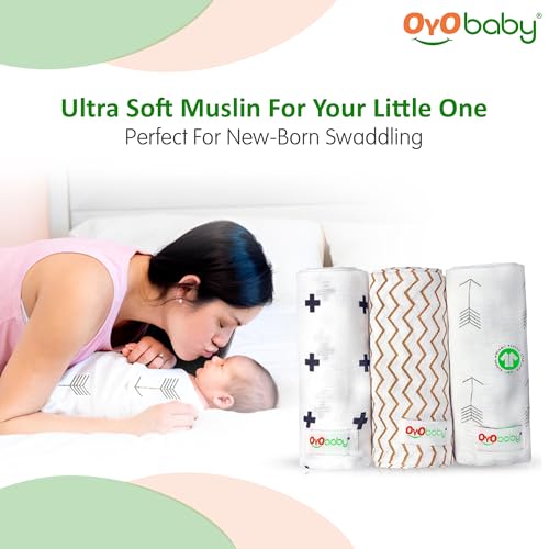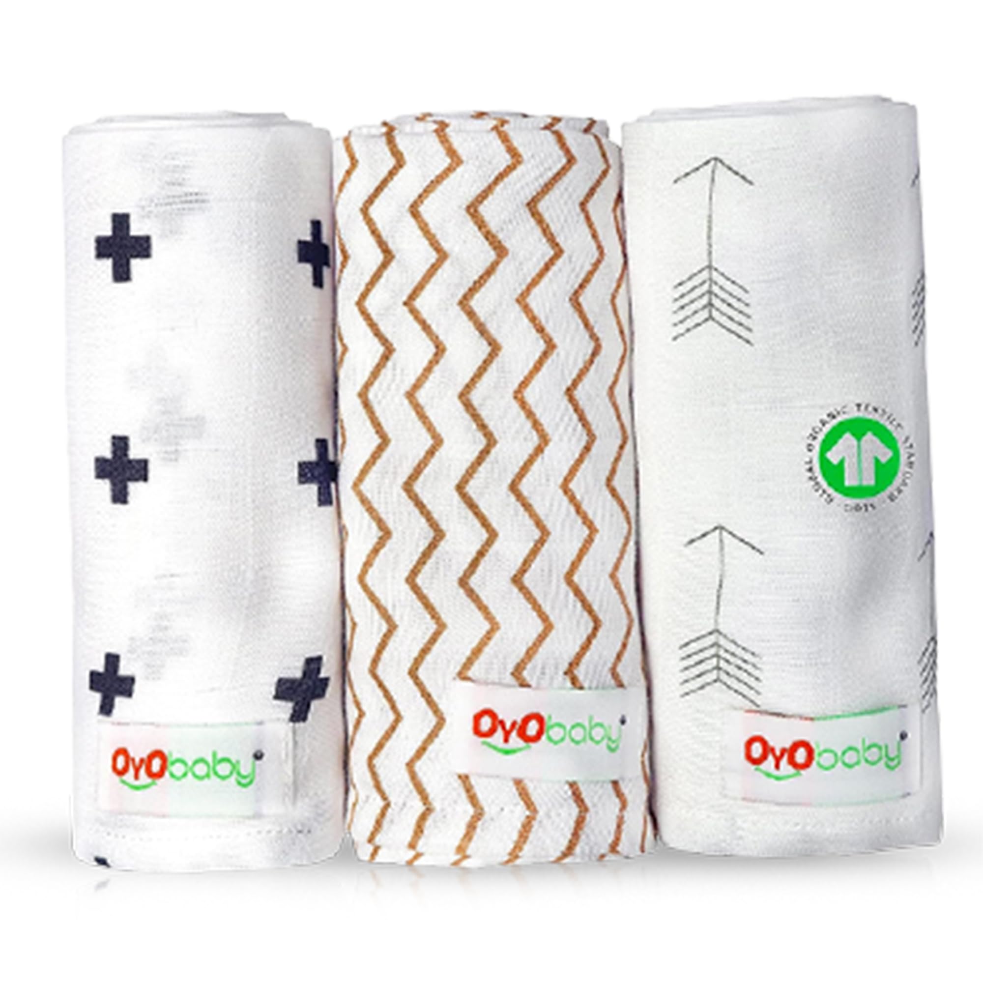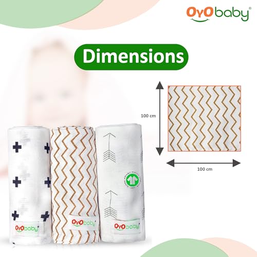 OYO BABY Muslin Cloth 100% Cotton Baby Swaddle for Babies | White Printed Muslin Wrap for New Born Baby | Pack of 3 Size â 100cm X 106cm 0-1.5 Years Babies