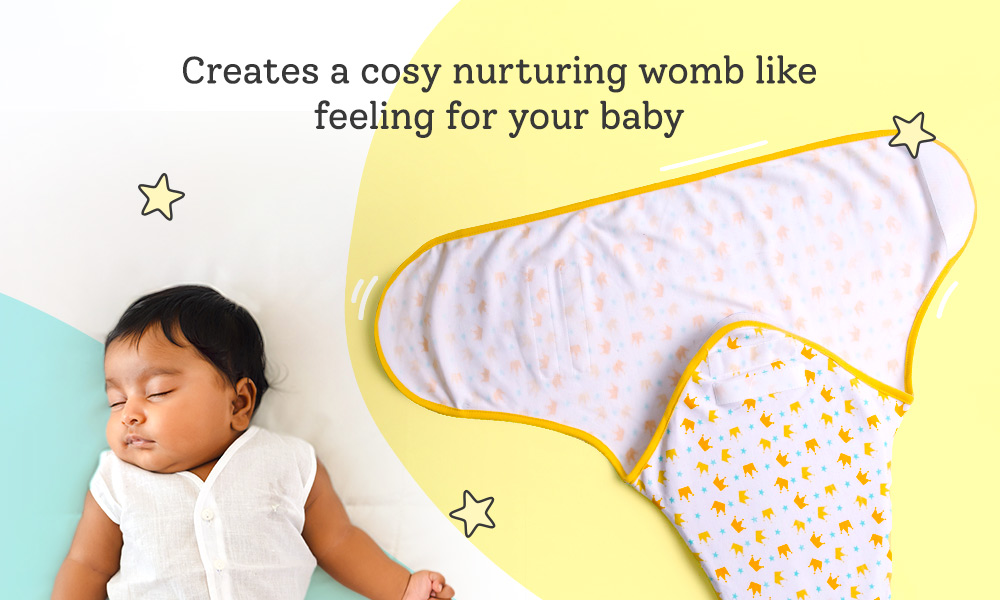 Offers Sound Sleep: It makes the newborn baby feel held and secure by creating a snugly cosy mummas belly-like space around its tiny body. It helps to hold in the baby's own jerky movements that can startle or hamper sleep.