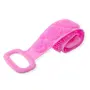 The Silicone Body Back Scrubber Double Side Bathing Brush Belt is a versatile and effective tool for thorough skin cleaning and massage.MaterialSilicone: Made from high quality food grade silicone that is durable hypoallergenic and resistant to bacteria. The material is soft and gentle making it suitable for all skin types.DesignDouble Sided: Features two sides with different textures for a comprehensive cleaning and massage experience.Exfoliating Side: One side has dense fine bristles designed to exfoliate dead skin cells unclog pores and improve blood circulation.Massage Side: The other side features round nub like protrusions for a soothing massage helping to relieve muscle tension and promote relaxation.FeaturesLength: The scrubber belt is typically long enough to reach all parts of the body including hard to reach areas like the back. The extended length ensures a comfortable grip and ease of use.Handles: Equipped with sturdy handles at both ends providing a secure grip and allowing for better control during use.Flexible and Stretchy: The silicone material is flexible and can stretch making it adaptable to different body shapes and sizes.BenefitsDeep Cleaning: Effectively removes dirt oil and impurities from the skin leaving it feeling clean and refreshed.Gentle Exfoliation: The soft bristles exfoliate without irritating making it suitable for sensitive skin.Improves Circulation: The massaging action stimulates blood flow promoting healthier skin and overall well being.Easy to Clean: The non porous silicone is easy to rinse and dries quickly preventing the growth of Mold and bacteria.Hygienic: Unlike traditional loofahs and sponges silicone is resistant to bacterial growth ensuring a more hygienic bathing experience.Ideal ForDaily Use: Suitable for everyday use in the shower or bath.All Skin Types: Safe and effective for all skin types including sensitive skin.Gift: Makes a thoughtful gift for friends and family who appreciate quality skincare tools.Overall the Silicone Body Back Scrubber Double Side Bathing Brush Belt offers a comprehensive solution for skin deep cleaning and massage combining functionality with comfort and hygiene.