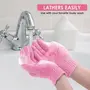 VALKYRIE 2Pcs Exfoliating Wash Gloves Dual Texture Bath Gloves for Shower Body Scrub Exfoliating Mitt Dead Skin Remover Exfoliator Mitten Natural Body Loofah Washcloth (2pcs Pink)