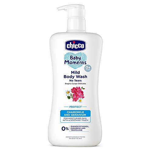 Taking care of the newbornâs bodywash is an essential care for any new parent. Our New Baby Moments Mild Body Wash Protect No Tears has an Advanced formula that does not contain Phenoxyethanol & Parabens. Moreover it is also free from other harmful toxins & preservatives like Tropolone Mineral oil Dyes Alcohol Phthalates and EDTA which can adversely impact the babyâs delicate skin. The new Chicco Mild Body Wash Protect provides nourishment to babyâs body from its first usage. It contains the goodness of natural ingredients like Chamomile and Geranium which protects and soothes babyâs skin making it even âBetterâ for newborns.