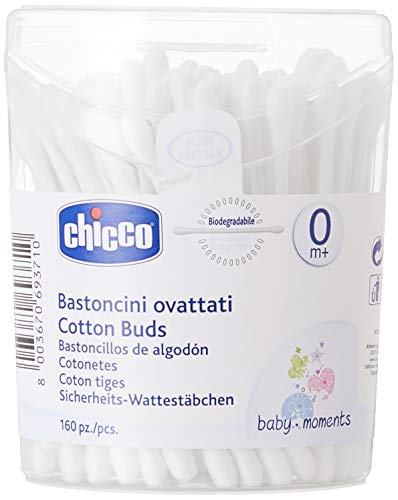 HomeBabyBath & SkinBaby BathingBody WashChicco Cotton Tips with Ear Cleaning Protection, Made of Paper Stem, Safe and Hygienic for Babies, Biodegredable (160 Pieces)