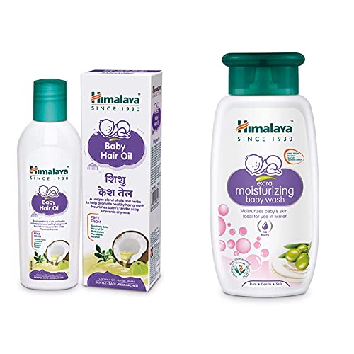 Himalaya Baby Hair Oil 200 mlAbout Himalaya Baby Hair Oil: Himalaya Baby Hair Oil is specially formulated for babies and is designed to nourish scalp and hair. Infused with a blend of oil and herbs Himalaya Baby Hair Oil helps promote hair growth nourish hair and prevent dryness and keeps the scalp moisturized. Benefits of Himalaya Baby Hair Oil ⢠Infused with the goodness of Amla Bhringaraja Gotu kola and Methi which are known to promote hair growth and luster ⢠Enriched with the nourishing oils of Coconut Sesame Almond and Olive ⢠Helps nourish scalp and hair ⢠Moisturizes dry and itchy scalp ⢠Free from mineral oil alcohol parabens synthetic color and phthalates ⢠Dermatologically tested clinically tested ⢠Non-sticky and non-stainingHimalaya Baby Care Extra Moisturizing Baby Wash 200mlHimalaya Extra Moisturizing Baby Wash is designed to effectively cleanse baby's skin and make it softer and smoother. Formulated with the goodness of Indian Aloe Almond Oil and Olive Oil which are well-known moisturizers to help prevent post-bath dryness. Also contains Milk which is known to soften and improve the skin's texture.