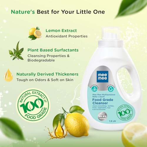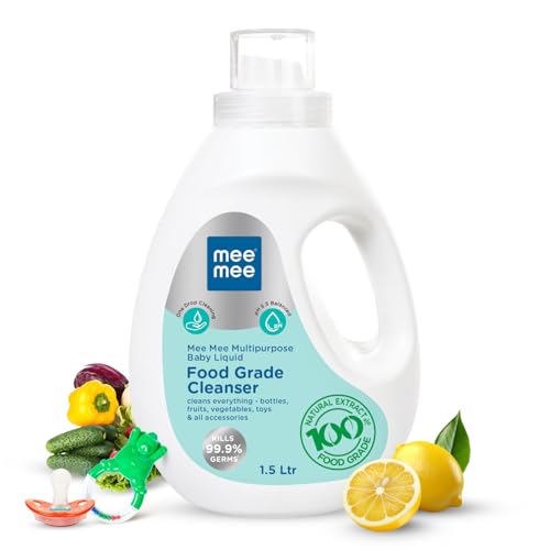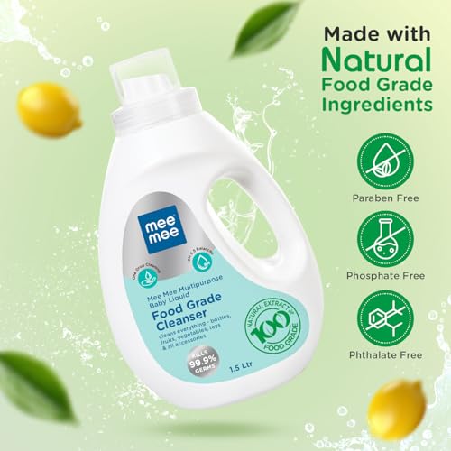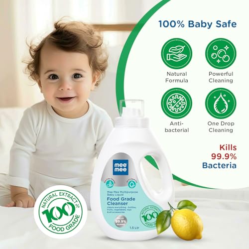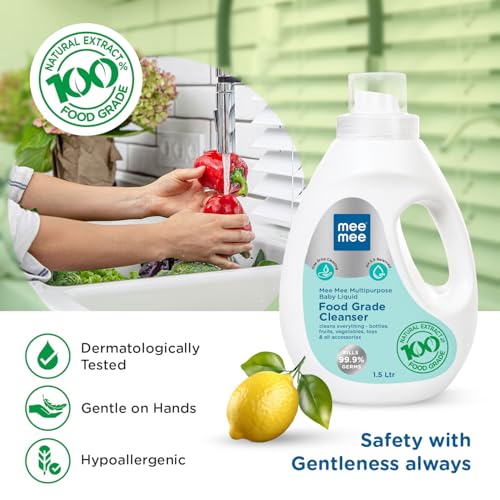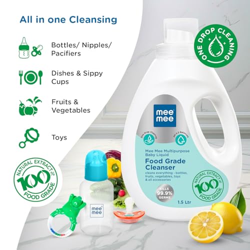 Mee Mee Food Grade Liquid Cleanser 1.5 L | Anti-Bacterial, Kills 99.9% Germs, 100% Natural Formula | For Baby Bottles, Accessories, Toys, Fruits & Veggies | One Drop Cleaning, Dermatologically Tested