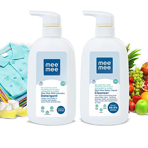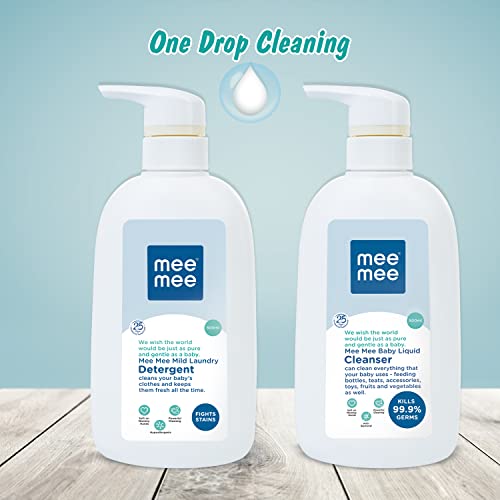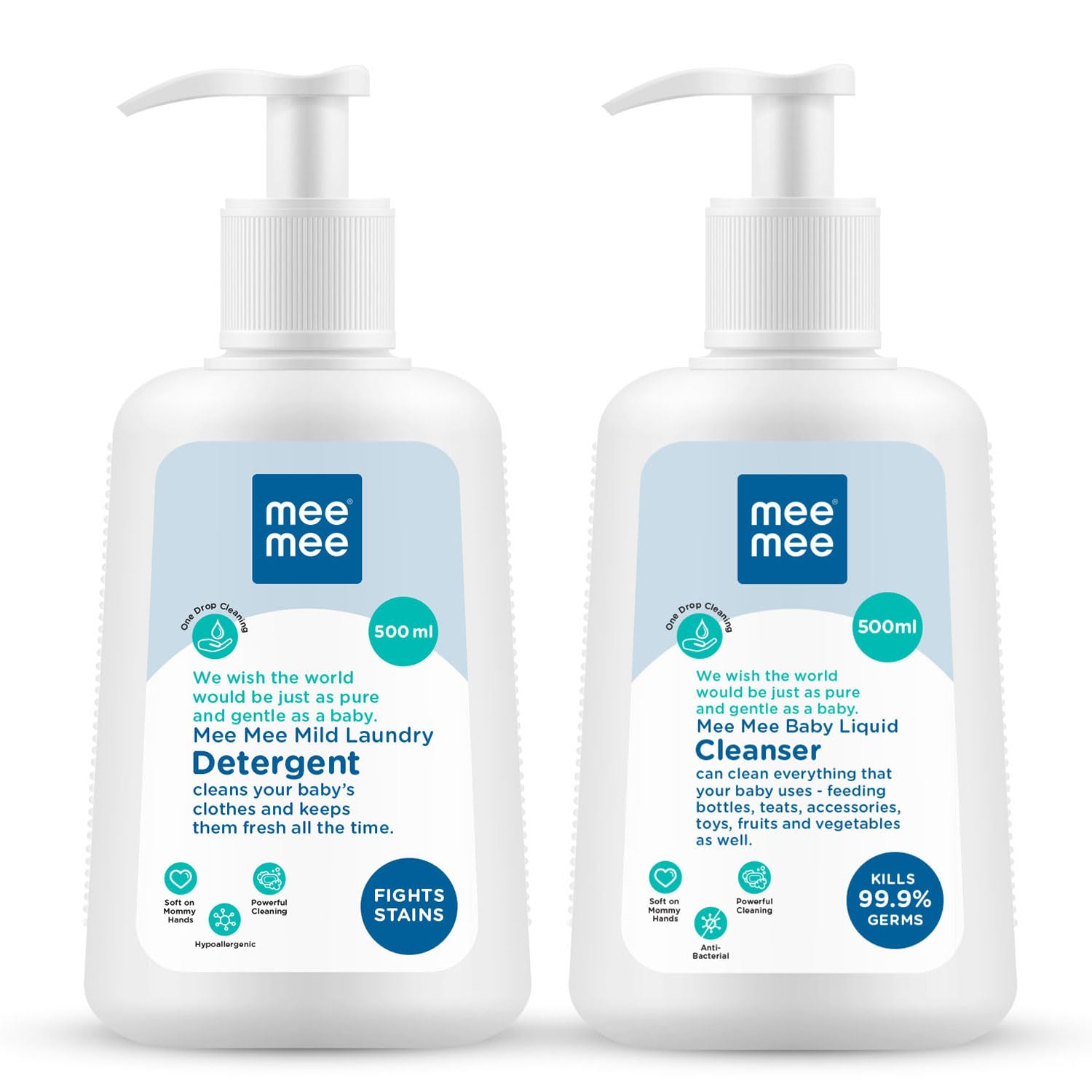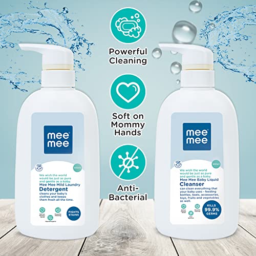 Mee Mee Mild Baby Liquid Laundry Detergent 500ml Bottle | Mee Mee Anti-Bacterial Baby Liquid Cleanser 500 ml Pack Combo | Kills 99.9% Germs, pH Balanced Dermatologically Tested Formula