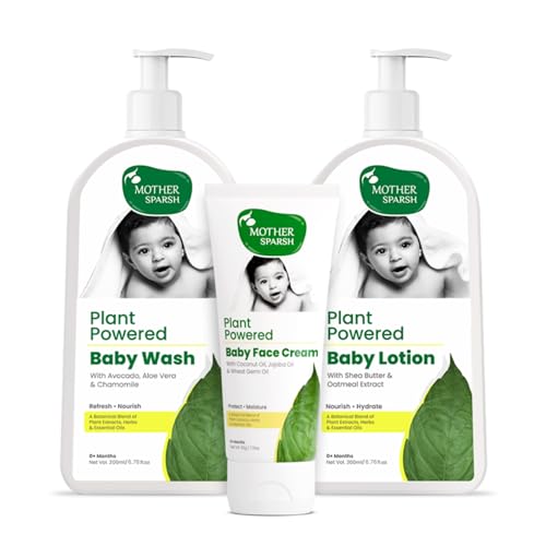 Mother Sparsh Plant Powered Natural Baby face Cream, 50g + Plant Powered Natural Baby Lotion and Baby Wash (200ml Each)