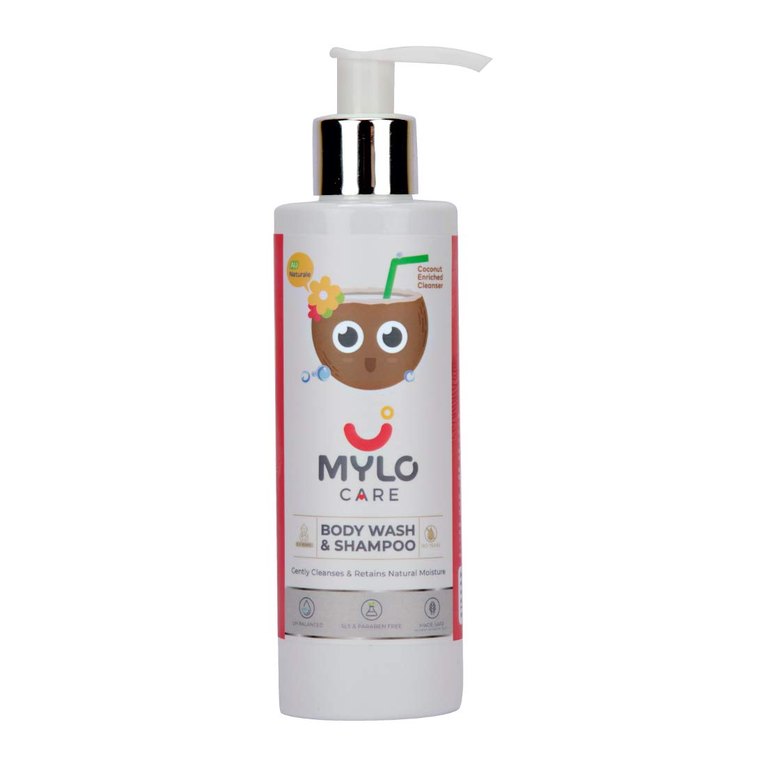 Mylo Care Baby Body Wash and Shampoo with Natural Coconut and No-Tears Formula |No Silicones, Parabens & Mineral Oil, 200 ml