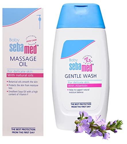 Sebamed Baby Massage Oil 150ml100 Percent botanical non sticky massage oil. Superior spread ability and faster absorption. Conventional massage oils contain mineral oil colorants and other irritants which can cause allergic reactions. Sebamed soothing massage oil contains 95 percent soy oil contains essential fatty acids which ensures superior hydration. 5 Percent wheat germ oil is the richest source of vitamin e. Sebamed soothing massage oil does not solidify at lower temperature made in Germany gentle care and protection of babyâs sensitive skin emollient with 95 percent natural soya oils high content of formula with vitamin f a soya oil compound insures high skin tolerability gentle protection for delicate baby skin ideal from day 7 2 years0 percent irritant reactions and almost 0 percent allergic reactions.Baby Sebamed Gentle Washdiv class="aplus"pThe bSebamed Baby wash extra soft/b is a baby wash product which is specially made for the delicate skin of your little angel. It is recommended for all the babies of new born age and above. This product is dermatologically tested to suit your babyâs sensitive and mild skin. This product is so mild in nature that it is suitable for daily use./p pThe Sebamed Baby wash extra soft comes with a no more tears formula which makes it completely safe for your baby. You need not worry even if it gets into your little oneâs eyes as the bbathing solution by Sebamed/b doesnât cause any irritation. It is devoid of chemicals and is sure to make the infantâs skin all the more softer and smoother. The product isnât alkali-based and thus it will not make the babyâs skin dry. This product contains a mild cleansing agent named the sugar tensid complex which helps moisturise your babyâs skin and maintain the oil balance in your babyâs skin. Hence this product keeps your babyâs skin soft smooth and supple. As this product maintains a pH value of 5.5 which is just right for a babyâs skin it is prescribed that you use this baby wash over the ordinary baby soaps available in the market. It doesnât even contain colour additives so you need not fret about skin reactions. The 200ml Sebamed Baby wash extra soft is available in a white container that has a blue lid. The product is travel friendly and easy to use. Its quality is assured to you by the manufacturing brand Sebamed. This bbodywash for babies/b is dermatologically tested./p/div For Your Baby's Delicate Skin Undoubtedly one of the best baby wash products the Sebamed Baby Wash 200ml is especially meant to cleanse your newborn baby. This baby body wash is dermatologically tested and has a high tolerability to suit your little one's sensitive skin. It is suitable for daily use too. You can rely on the baby wash extra soft to be tender on the delicate skin of your baby. Its no tears formula goes easy on your kid's sensitive eyes and does not let it water any time you use it. Devoid of Soap and Harmful Chemicals The Sebamed Baby Wash is devoid of those chemicals that can harm your baby's skin and it doesn't even use soap or alkali. Sugar tensid complex a mild cleansing agent used in the baby wash refrains from stripping the skin off its natural oils to avoid dryness while allantoin works towards keeping it soft and smooth. This baby wash 200ml maintains a pH value of 5.5 to accelerate acid mantle's development and it steers clear of colour additives which make it one of the best options for protection from the first day itself. Brand: Sebamed For cleansing newborn babies Dermatologically tested Suitable for daily use Soap and alkali-free Maintains pH value of 5.5 Uses allantoin for smooth and soft skin No tears formula High skin tolerability