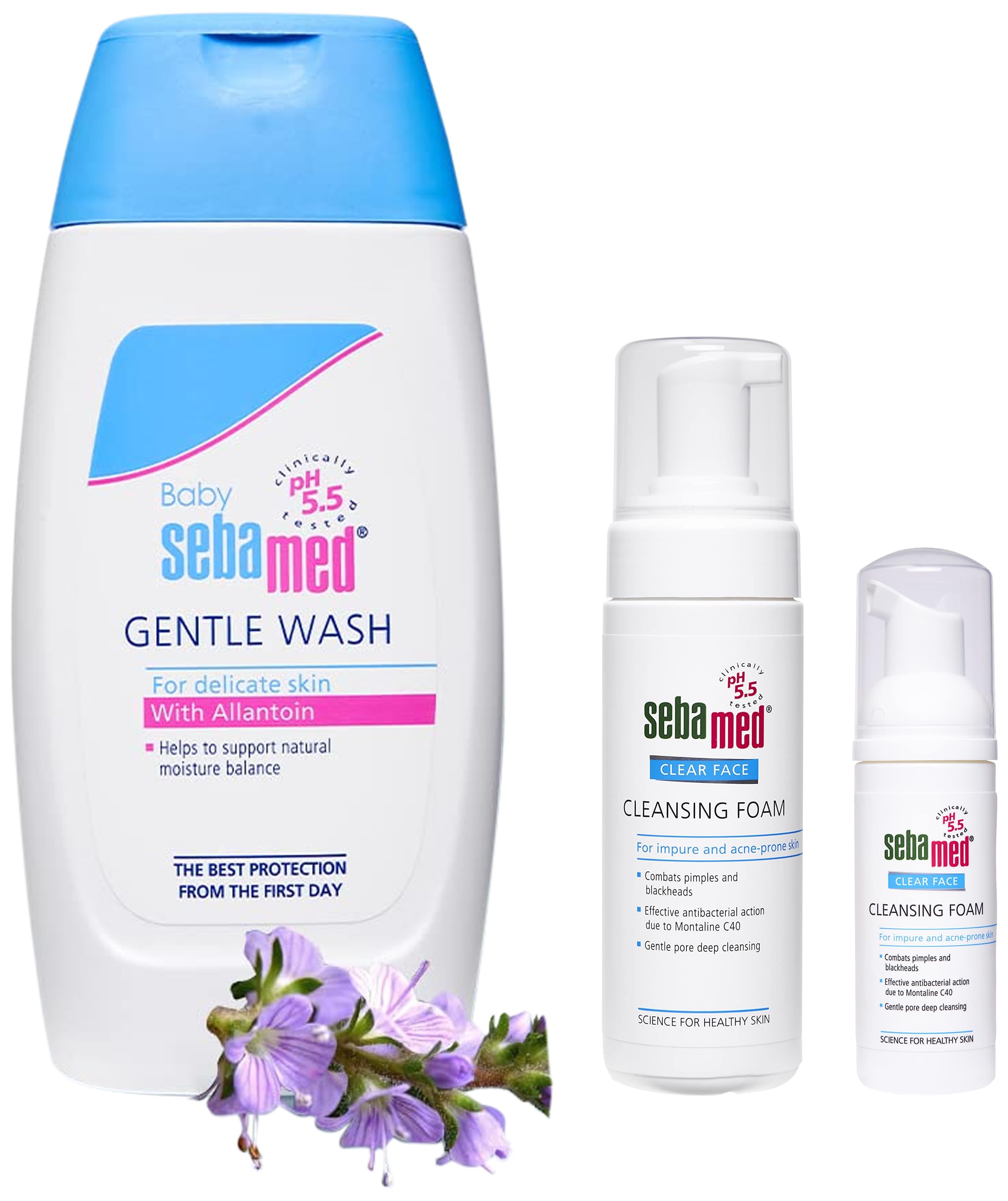 SebaMed Clear Face Cleansing Foam 150mlSebamed clear face foam 150ml is an anti-bacterial cleansing foam that fights pimples blackheads and skin impurities gently and effectively. It protects against skin barrier damage during cleansing leaving skin smooth and hydrated. Made with pro-vitamin B5 it is apt for acne prone skin and improves complexion deep cleanses pores with Montaline C40 a coconut oil derivative.Baby Sebamed Gentle Washdiv class="aplus"pThe bSebamed Baby wash extra soft/b is a baby wash product which is specially made for the delicate skin of your little angel. It is recommended for all the babies of new born age and above. This product is dermatologically tested to suit your baby sensitive and mild skin. This product is so mild in nature that it is suitable for daily use./p pThe Sebamed Baby wash extra soft comes with a no more tears formula which makes it completely safe for your baby. You need not worry even if it gets into your little one eyes as the bbathing solution by Sebamed/b doesn cause any irritation. It is devoid of chemicals and is sure to make the infant skin all the more softer and smoother. The product isn alkali-based and thus it will not make the baby skin dry.