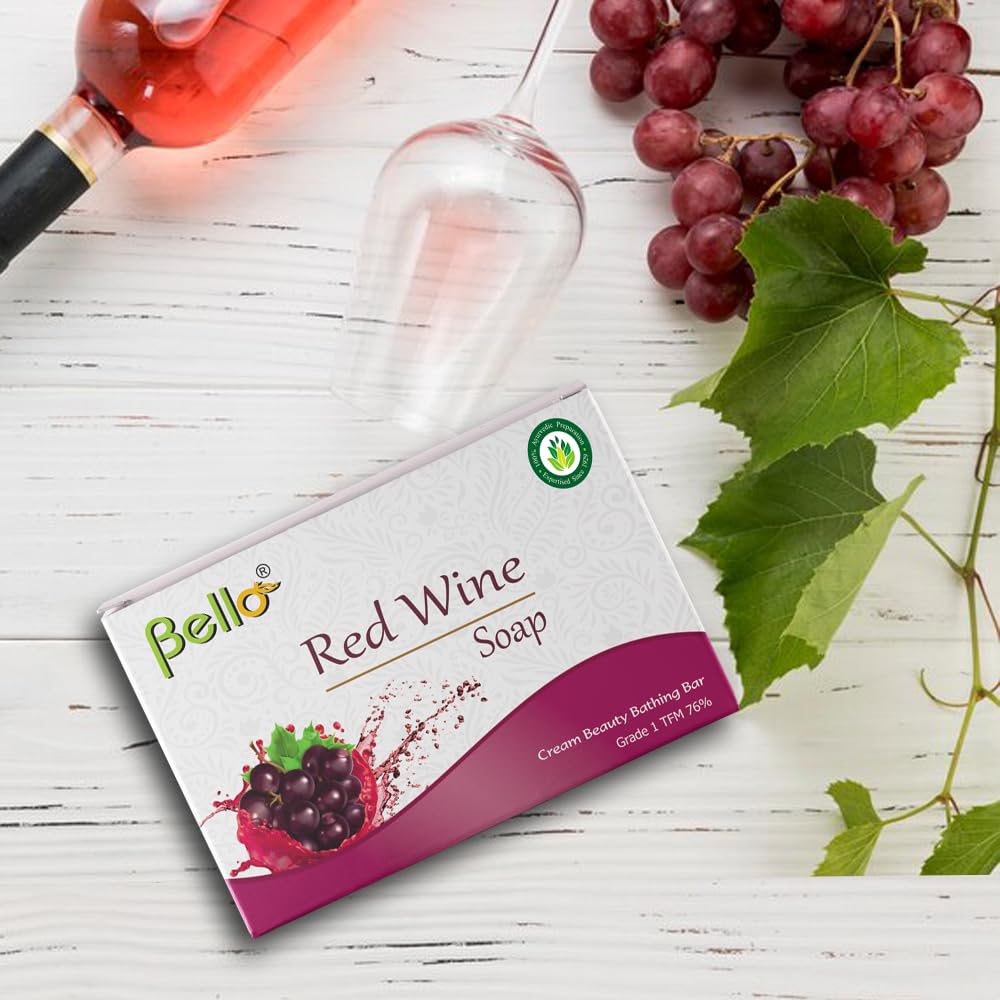 Bello Redwine Soap is a Grade 1 Soap with 76% TFM. It is 100% Ayurvedic preparation with no chemicals. Introducing Bello Redwine Soap â Elevate your skincare routine with the luxurious touch of red wine essence. Crafted with care and precision our Bello Redwine Soap is a unique blend of natural ingredients designed to pamper your skin and indulge your senses.