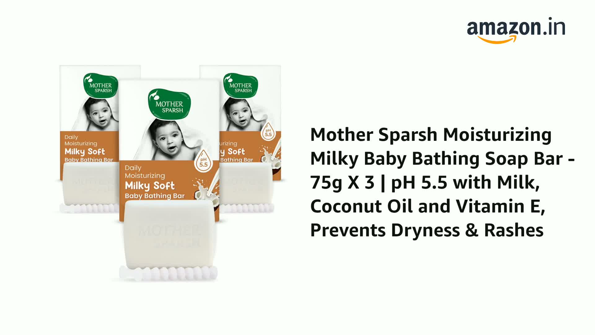 Mother Sparsh Moisturizing Milky Baby Bathing Soap Bar - 75g X 3 | pH 5.5 with Milk, Coconut Oil and Vitamin E, Prevents Dryness & Rashes