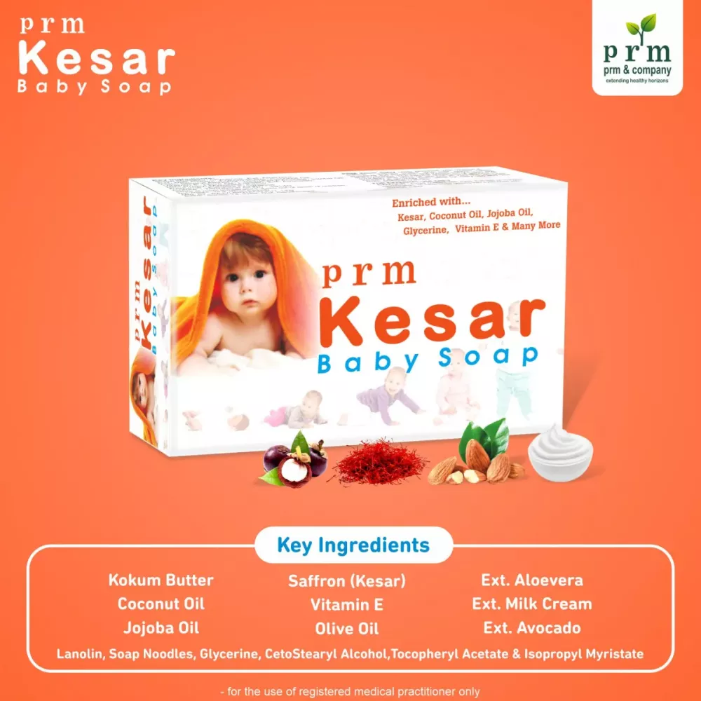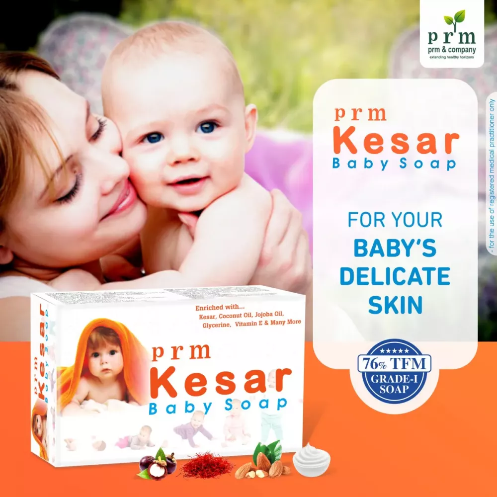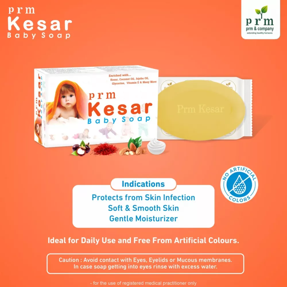 PRM kesar baby soap enriched with ayurvedic herbs and it has been carefully crafted for sensitive and gentle skin of babies. It has the wellness of Kesar, Vitamin E, Milk Cream, Kokum butter, Coconut oil and many more
