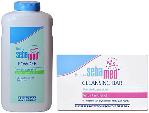 Sebamed Baby Powder with Honeysuckle 200gxtra soft formula with HoneysuckleHelps prevent heat rashes.Sebamed Baby Cleansing Bar - 100 gTriticum vulgare starch disodium lauryl sulfosuccinate stearic acid palmitic acid cetearyl alcohol aqua talc lactic acid sodium lauroyl sarcosinate cocamidopropyl betaine panthenol insulin lecithin glycerine magnesium aspartate alanine lysine leucine tartaric acid parfum ci 77891. Mild and Gentle Soap-free Bar The best choice for your baby's first bath Sebamed baby cleansing bar is mild and gentle soap-free bar for your baby's skin. Containing sodium cocoyl glutamate and amino acids this Sebamed cleansing bar keeps your baby's skin soft and healthy. Seabed cleansing bar but does not strip the moisture off your baby's skin. It also contains the natural skin-related sugar insulin and Panthenol to moisturise and regenerate your baby's skin. Vitamin E which helps in soothing the skin also contributes to keeping your child's skin supple. This soap-free bar will provide complete cleansing without drying out thanks to its pH value of 5.5. Nourishment and Care for Tender Baby Skin This baby cleansing bar is 100% alkali free and helps in stabilising the moisture balance of the skin. It can be used regularly for a bath or to wash your baby's face and hands. Even if your baby is suffering from some skin disease you can use this cleansing bar Sebamed without any worry as it has skin tolerance property. The Sebamed baby cleansing bar 100gm gives complete pore-deep cleansing which helps in combating pimples blackheads and skin impurities. All you need to do is apply it on your baby's skin lather it up and rinse to leave your baby feeling refreshed and relaxed. Brand: Sebamed Ideal for: Pimples blackheads and skin impurities Age: Newborn and up Contains: Moisturisers and amino acids Good skin tolerance even in skin disease Content: 100 g