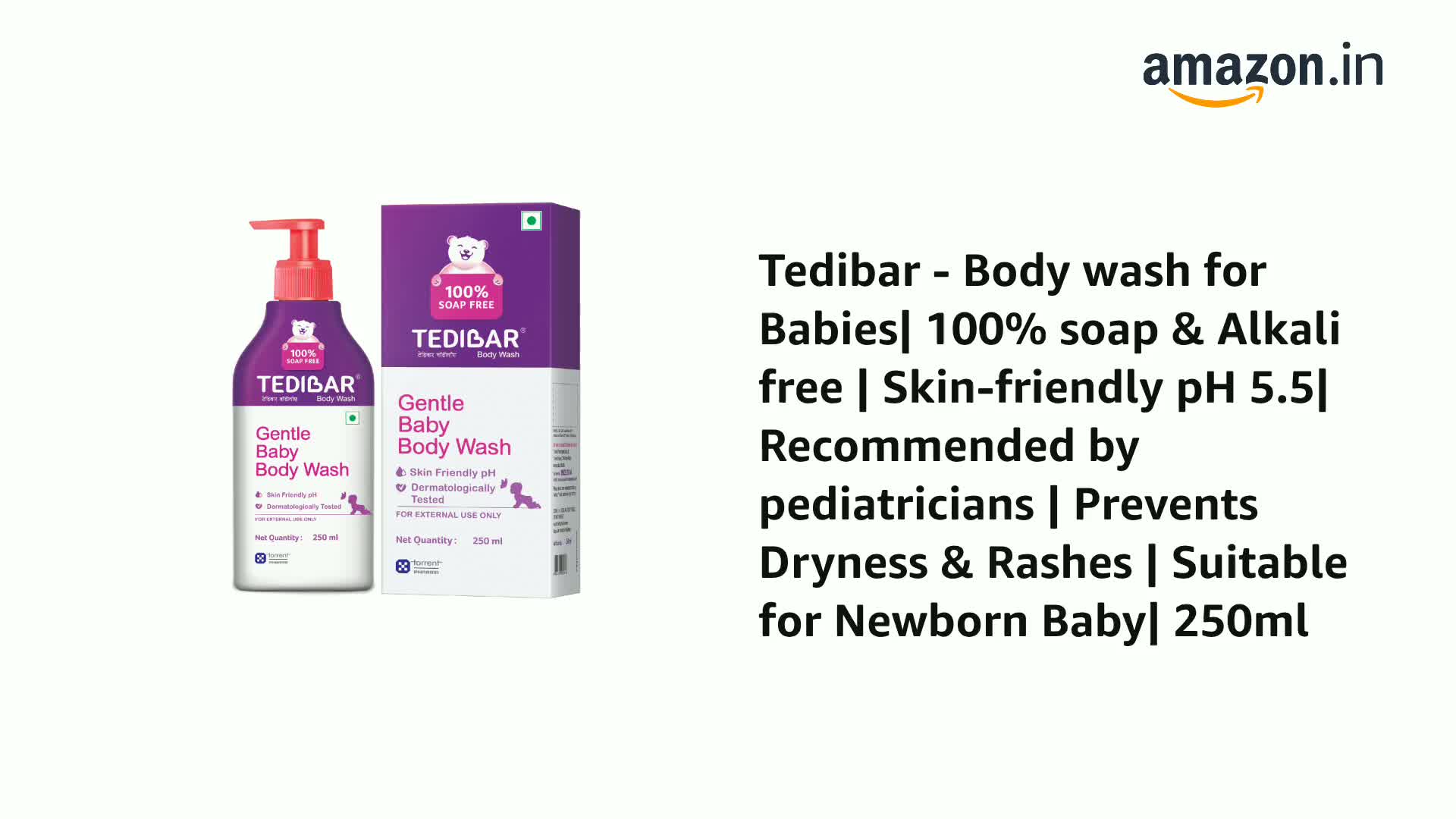 Tedibar - Body wash for Babies| 100% soap & Alkali free | Skin-friendly pH 5.5| Recommended by pediatricians | Prevents Dryness & Rashes | Suitable for Newborn Baby| 250ml