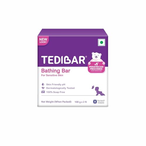 Tedibar Rich Moisturising Baby Body Wash 250ml with Skin Friendly PH | 100% Soap & Alkali Free | Prevents Dryness & Rahses | Dermatologically Tested | - By Torrent PharmaTedibar bodywash® is 100% soap free and alakali free with very mild ingredients. Tedibar bodywas has a skin friendly pH 5.5 which helps to retain the natural pH of your baby's skin thereby reducing the chances of rashes and dryness.Tedibar Moisturising Baby Bathing Bar 100gx2 (Pack of 1) with Skin Friendly PH|100% Soap Free | Dermatologically Tested and No. 1* Pediatrician Prescribed Moisturising Bar - By Torrent PharmaTedibar is the No. 1 baby moisturizing bathing bar prescribed and supported by Paediatricians.Tedibar being soap-free and alkali-free offers the best protection for your little one's skin. It hydrates the baby's skin and retains moisture. Recommended to maintain baby' skin pH and prevent skin problems like rashes and dryness.