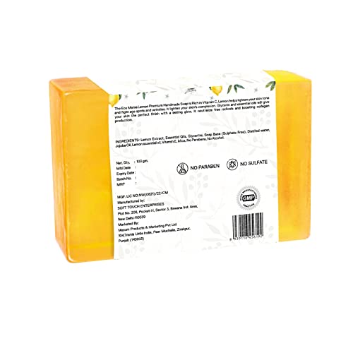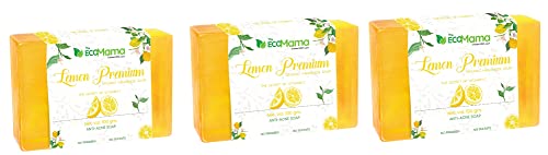 The Eco Mama Organic Lemon Bathing Bar | Premium Handmade Soap with Vitamin C | 100g | Anti-Acne | Paraben-Free & Sulfate-Free - Pack of 3
