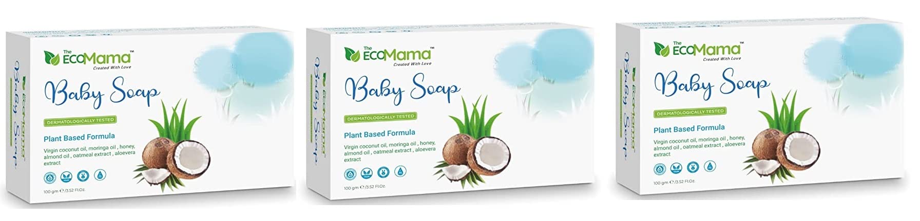 The Eco Mama Tear Free Moisturizing Baby Soap - Pack of 8 (100 gm Each)| Relieves Itching, Rashes & Inflammation | With Coconut Oil, Honey, Moringa Oil, Aloe Vera|Toxin Free