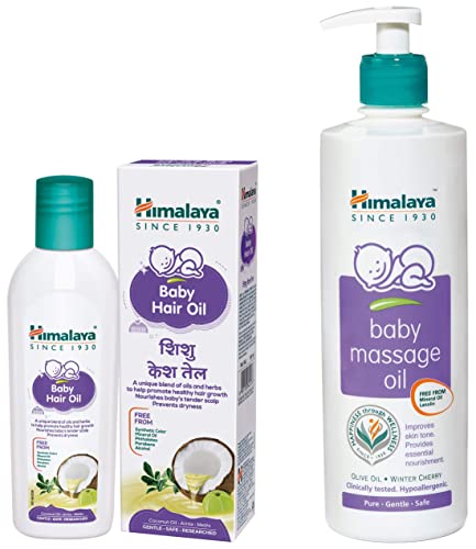 Himalaya Baby Massage Oil (500ml)Daily massage with Himalaya Baby Massage Oil helps improve your baby's growth and development. The light and non-staining formula of the oil has dual benefits and can be used for massaging before bathing and for moisturizing after bathing.Himalaya Baby Hair Oil 200 mlAbout Himalaya Baby Hair Oil: Himalaya Baby Hair Oil is specially formulated for babies and is designed to nourish scalp and hair. Infused with a blend of oil and herbs Himalaya Baby Hair Oil helps promote hair growth nourish hair and prevent dryness and keeps the scalp moisturized. Benefits of Himalaya Baby Hair Oil Infused with the goodness of Amla Bhringaraja Gotu kola and Methi which are known to promote hair growth and luster Enriched with the nourishing oils of Coconut Sesame Almond and Olive Helps nourish scalp and hair Moisturizes dry and itchy scalp Free from mineral oil alcohol parabens synthetic color and phthalates Dermatologically tested clinically tested Non-sticky and non-staining