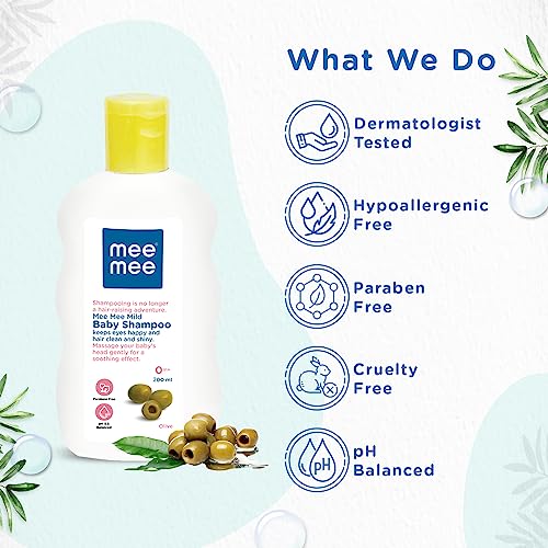 All Mee Mee products are carefully made to the highest safety standards. Mee Mee baby lotion is the non greasy formulation gently protects and moisturizes your babyâs delicate skin. Specially made for your babyâs skin it is absorbed easily contains chamomile extract as the natural moisturizing and soothing agent. And For your childâs safety and health. All Mee Mee Products are carefully made to the highest safety standards. Mee Mee baby shampoo is the âmildâ formulation with the conditioner cleanses the scalp and leaves hair naturally clean and shiny. Specially made for your babyâs hair and scalp it comes with a âno tearsâ formula and contains natural extracts.
