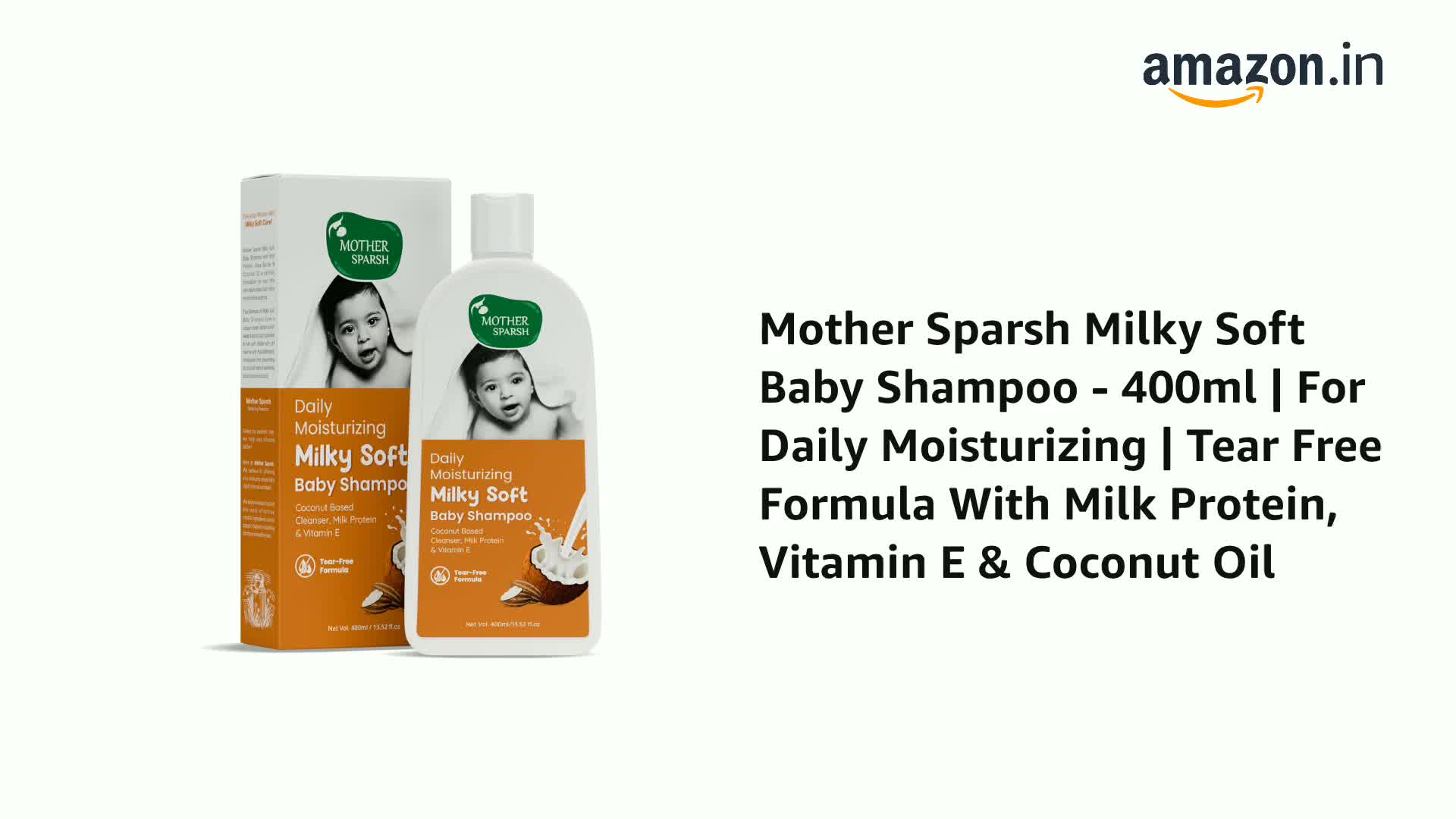 Our Daily Moisturizing Baby Shampoo offers gentle nourishment for babys delicate scalp and hair. Our Baby shampoo provides essential nutrients with a tear-free formula. Its a mild coconut-based shampoo that gently cleanses hair and is mild to the eyes. This baby shampoo can be used for 1-year-old to 10-year-old kids. This kid's shampoo is free from harmful chemicals making it a safe choice to pamper your babys/ kids hair.