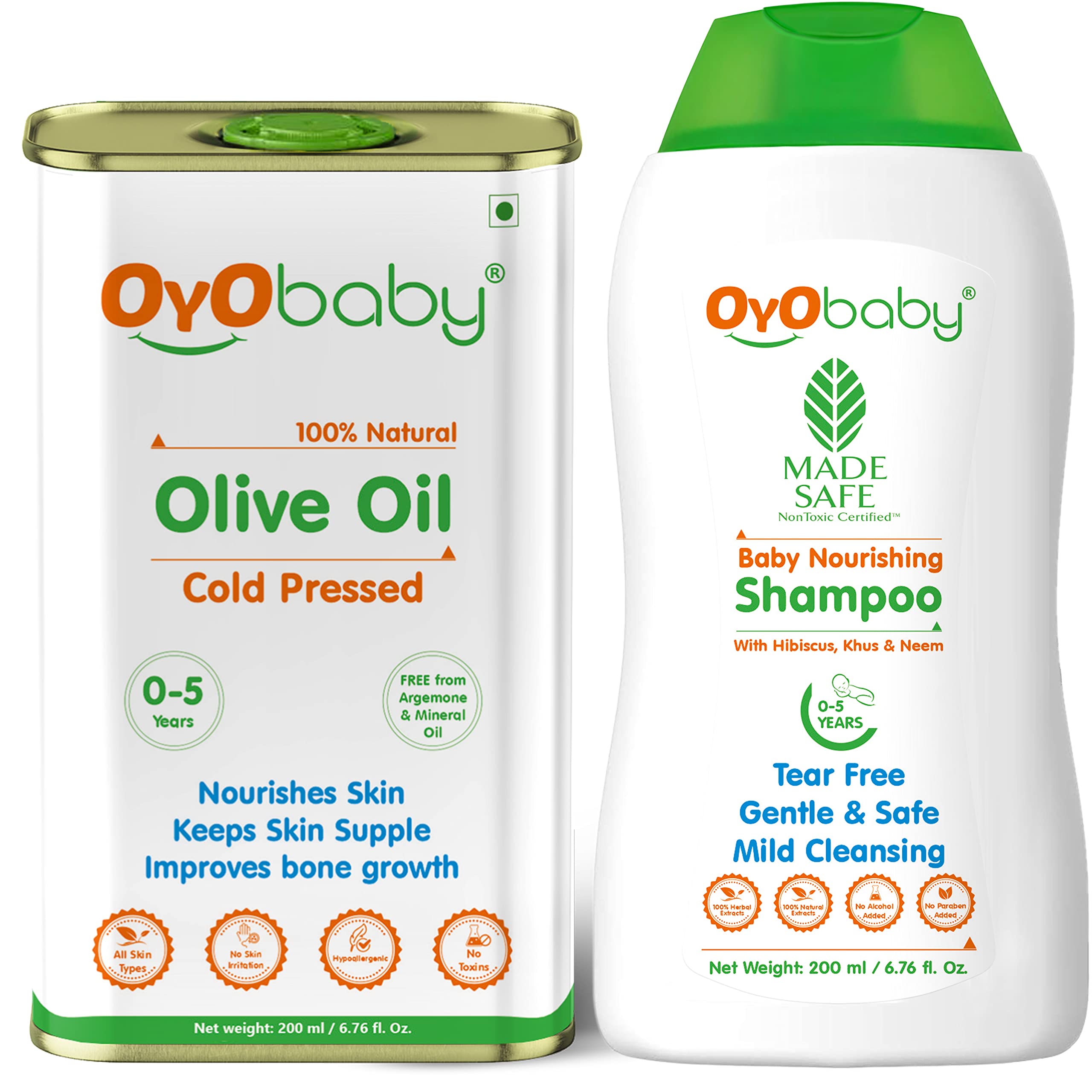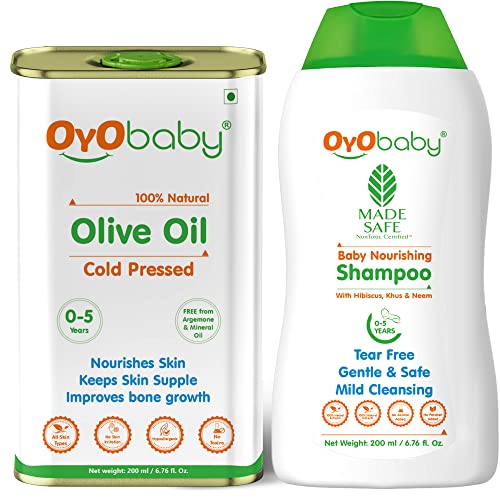 OYO BABY New Born Combo Baby No Tears Baby Shampoo for Newborn Babies and Extra Virgin Olive oil for Baby massage 200ml each