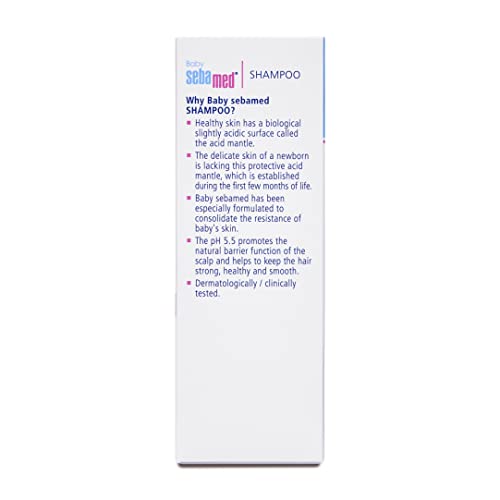 Sebamed children's shampoo has ph of 5. 5 And has sugar based mild cleanser. Other children shampoos have ph greater 7 and chemicals like formaldehyde phthalates sls which leads to allergic reactions. At ph 5. 5 Alone the scalp barrier remains intact. It has been clinically proven that only at ph 5. 5 Scalp is hydrated and strengthens scalp for optimal hair growth. Lipid and moisture loss is minimum and the growth of malassezia which leads to dandruff is restricted. Sebamed children's shampoo is free from irritants and hence has 0 percent incidences of irritant reactions. Sebamed children's shampoo contains botanical ingredient hence the reported incidence of allergic reaction is 0. 000003 Percent. Only at ph5. 5 The baby's delicate eyes are not irritated and the tear free formula is free from formaldehyde. Sebamed children's shampoo is ideal for cradle cap seborrheic dermatitis and dandruff. Made in germany100 percent soap and alkali free especially mild cleansers for gentle cleansing without irritating the scalp or hair herbal extract of chamomile alleviates irritation and soothes the skin special no tears formula does not sting in the eyes leaves hair fragrant and silky pleasant botanical fragrance ideal from six month onwards clinically proven suitability for cleansing of hair and scalp in babies and infants with sensitive scalp was proven in the dermatological study. Users documented an excellent acceptance of the shampoo and 93 percent were willing to continue using it.