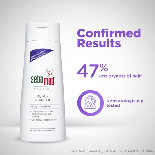 Sebamed Hair Repair Shampoo | pH5.5 I 47% less hair-dryness confirmed | Plant protein moisturises dry, damaged hair & scalp | Dermatologically & clinically tested | SLS & parabens free | 200 ml