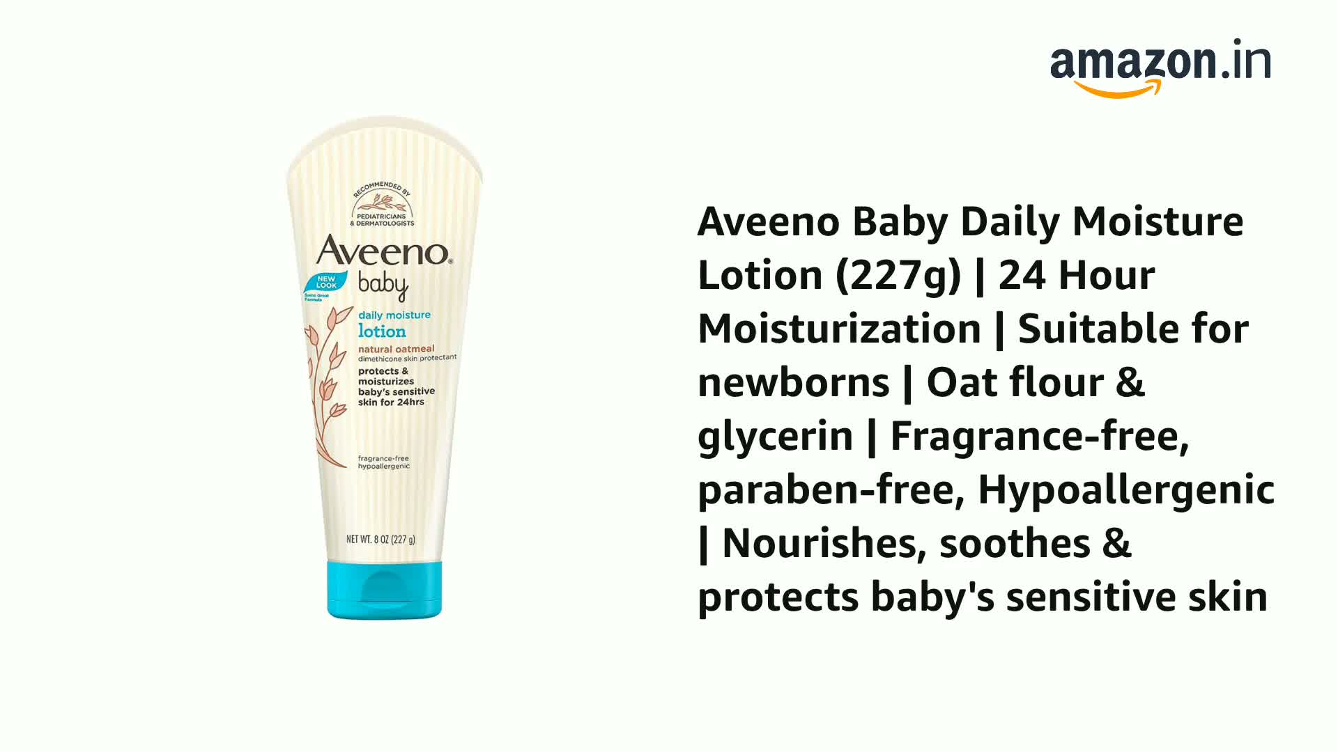 AVEENO Baby Daily Moisture Lotions ACTIVE NATURAL Oats formula contains 5 vital elements also found naturally in healthy skin. These elements soothe and help protect your baby's skin. The naturally nourishing non-greasy formula absorbs quickly moisturises for a full 24 hours contains no drying alcohols and won't clog pores. Its formulated to be hypoallergenic fragrance-free and gentle enough for daily use even on a new-borns delicate skin. AVEENO uses select natural ingredients because of their advanced benefits. These are called ACTIVE NATURALS natural ingredients uniquely formulated to deliver visible results. Scientists at AVEENO follow highest standards of ingredient selection formulation and manufacturing with processes that retain the strength and purity of such ingredients. Carefully extracted from the oat kernel ACTIVE NATURAL Oat Extract contain 5 vital ingredients also found naturally in healthy baby skin. These ingredients like proteins lipids enzymes vitamins and anti-oxidants provide a soothing effect while deeply nourishing delicate baby skin. INGREDIENT: Active Ingredient: Dimethicone 1.2% Purpose: Skin Protectant Inactive Ingredients: Water glycerin distearyldimonium chloride petrolatum isopropyl palmitate cetyl alcohol avena sativa (oat) kernel flour benzyl alcohol allantoin sodium chloride.