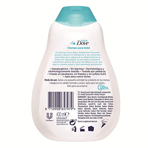 Baby Dove Rich Moisture Baby Shampoo 400 ml Mild No Tears Shampoo - Hypoallergenic No Sulphates No ParabensAs a parent you know that baby's skin needs extra special care. But did you know that after every bath baby's skin can lose moisture up to 5 times faster than yours? That why our baby dove rich moisture shampoo helps replenish essential moisture and nutrients in the scalp as it gently cleanses. Baby dove rich moisture shampoo has a hypoallergenic and ph neutral formula that dermatologically and pediatrically tested. With a ph neutral formula and enriched with our ¼ moisturising cream that prevents dryness it keeps your baby hair feeling soft and also gives your baby a visibly healthy scalp. And with the delicate fragrance you can simply enjoy those special bath time moments with your little one safe in the knowledge that youre giving them the care they deserve. Baby dove rich moisture shampoo is created with no parabens no dyes and no phthalates. To sum it up baby dove rich moisture shampoo is hypoallergenic tear free dermatologically pediatrically and ophthalmologically tested. It is created with no parabens dyes or phthalates leaves your baby hair and scalp feeling soft and the fragrance is specially developed for your baby delicate skin. Try baby dove rich moisture shampoo and feel the difference.Baby Dove Rich Moisture Nourishing Baby Lotion 400 ml With Moisturising Cream Gentle Care for Baby's Soft SkinAs a parent you know that baby's skin needs extra special care. But did you know that after every bath baby's skin can lose moisture up to 5 times faster than yours? The best lotion for babies should give the gentle nourishing care their delicate skin needs. Bathing can lead to skin dryness so use baby dove rich moisture baby lotion to help replenish the essential moisture in your baby skin for up to 24 hours. It moisturizes and replenishes your baby precious skin barrier. From the very first use this lotion for baby soothes and hydrates to provide moisture for your baby skin and it dermatologically and pediatrically tested so you can feel safe in the knowledge that your baby skin is getting the extra special care it deserves. Plus the gentle hypoallergenic and ph neutral formula of this baby dove nourishing baby lotion is suitable to use even on your new-born. Baby dove rich moisture nourishing lotion is created with no parabens no dyes and no phthalates. Use baby dove rich moisture baby lotion after bath time to moisturize your little one delicate skin while leaving it super soft delicately scented and ready for snuggles.