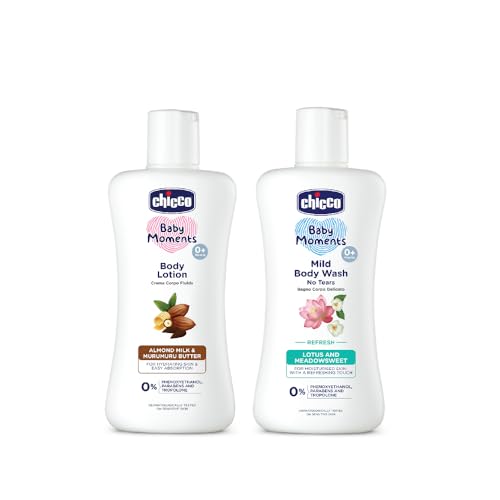 Chicco Baby Moment Body Lotion moisturizes babyâs total skin all the day. The Body lotionâs ultra-rich formula gives high nourished skin and also restore skin natural moisture that prevents dryness and gives a very soft and smooth babyâs skin after use. Chicco Baby Moment Mild bodywash refresh is new age solution for babyâs bodywash keeping it highly refreshing moisturized soft after bath. The Bodywash Formula is: Mild on skin: Special mild formula developed for bathing babyâs body and skin; It is a soap free formula for extra soft and refreshing babyâs skin after bath; the bodywash intensely hydrates moisturize and refine skin pores for a revitalized refreshing after feel; It prevents dryness and keeps babyâs skin moisturized after bath.