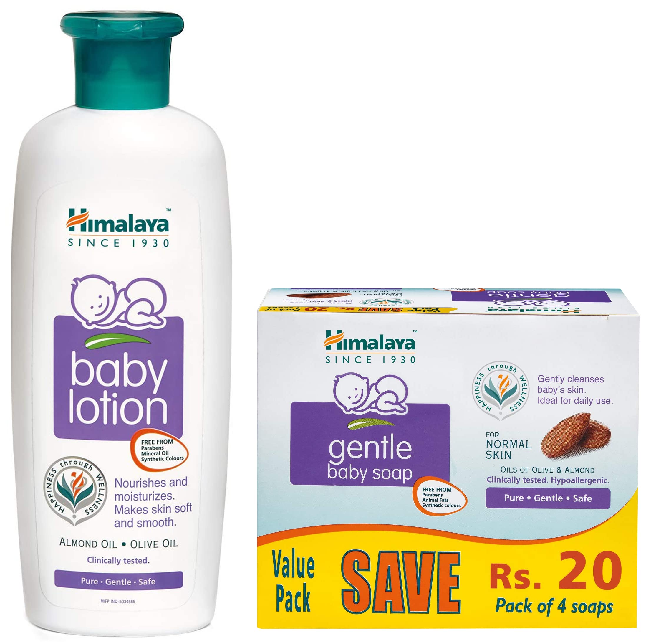 Himalaya Gentle Baby Soap Value Pack 4 * 75gHimalaya Gentle Baby Soap is formulated to gently cleanse and condition your baby's skin leaving it soft and hydrated.The goodness of Olive Oil and Almond Oil is infused into the soap making it ideal for daily useHimalaya Baby Lotion (100ml)Himalaya Baby Lotion (100ml)