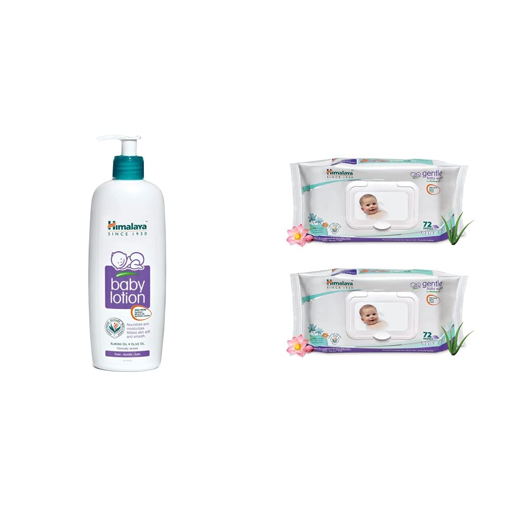 Himalaya Gentle Baby Wipes - 72 Pieces (Pack of 2)About Himalaya Gentle Baby Wipes: Infused with the goodness of Aloe Vera and Indian Lotus extracts Himalaya Gentle Baby Wipes are mild enough to soothe baby's bottom during a diaper change. Our wipes can also be used to gently cleanse baby's skin. Ideal for use when traveling.Himalaya Baby Body Lotion For All Skin Types (400 ml)Himalaya Baby Body Lotion For All Skin Types (400 ml)