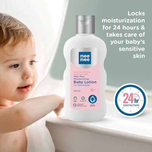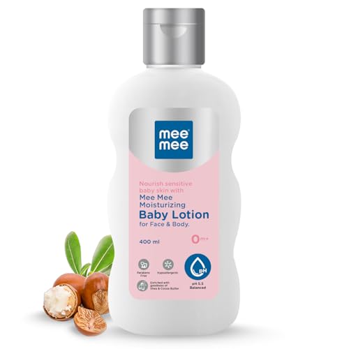 Mee Mee Moisturizing Baby Lotion for Face & Body, Shea, Cocoa Butter & Almond Oil, 24 Hrs Moisturization (400ML)