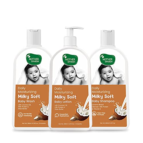 Mother Sparsh Milky Baby Lotion, Milky Baby Wash & Milky Baby Shampoo | 200ml each | Combo Pack of 3