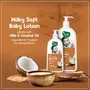 Daily Moisturizing Milky Body Lotion for Baby is a nourishing blend of milk protein coconut oil and shea Butter. It Gently nourishes the babyâs skin with a pH- neutral formula. The non-sticky texture of Milky Soft Body Lotion for Baby keeps delicate skin soft and supple. Its 24-hour hydration makes it essential in the daily routine of babies. This kid's Body Lotion is free from harmful chemicals making it a safe choice to pamper your babyâs Skin.