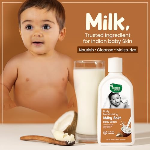 Mother Sparsh Milky Soft Baby Wash - 200ml | with Milk Protein & Coconut Oil | Tear Free Natural Formula for Babies with No Added Sulphates