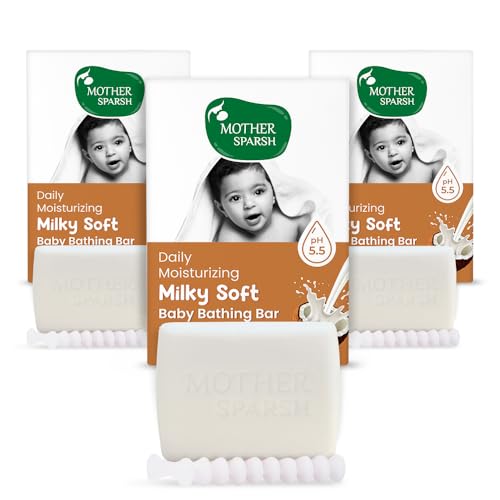Daily Moisturizing Milky Soft Baby Bathing Bar is a gentle and pH-balanced baby soap designed to provide tender care for your Baby. Its soap-free formula based on SynDet ensures a tear-free bath time for Baby ensures baby's skin to be fresh and Hydrating. This baby Soap bar offers gentle cleansing and nourishment enriched with natural ingredients like milk and coconut oil. Baby soap for new born is free from harsh chemicals such as parabens SLS and SLES. Baby Soap can be used as Kids soap for 5 to 10 years. Milky Soft baby soap is Trusted by dermatologist & also best baby soap. Elevate your baby's bath time routine with this mild and nurturing Baby soap bar.